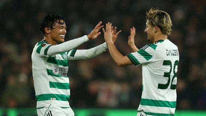 11月27日(北京时间28日凌晨)欧罗巴联赛小组赛第五轮,苏格兰凯尔特人队以3-1击败荷兰荷甲球队费耶诺德队。后者包括日本国家队前锋上田桐生和后卫渡边刚。本赛季,凯尔特人队的双星前锋前田大兰和中场雷奥共同完成了球队的所有进球,为球队的胜利做出了最大的贡献。本场比赛共有四名日本选手首发。比赛仅11分钟,费耶诺德凭借上田桐生的第一个进球取得领先,让主队取得领先。不过,凯尔特人队很快发起反击。第31分钟,旗手雷彦右路精准传中,韩国中场杨向俊头球破门将比分扳平。第43分钟,前田大乱在前场大力逼抢,导致对方门将回球失误。旗手Reio用他的r得分右脚将比分2-1领先。下半场第37分钟,前田达兰在禁区前获得反击关键球。队友本杰明·尼格伦击球得分,将比分定为3-1。赛后,英国广播公司(BBC)评论道:“凯尔特人在上半场完成翻盘,打乱了费耶诺德的节奏,并在下半场延续了势头,让对手为错失良机付出了代价。”该媒体还指出,这是凯尔特人队自2021年以来首次在欧洲客场获胜,结束了四年来的“客场输球魔咒”。