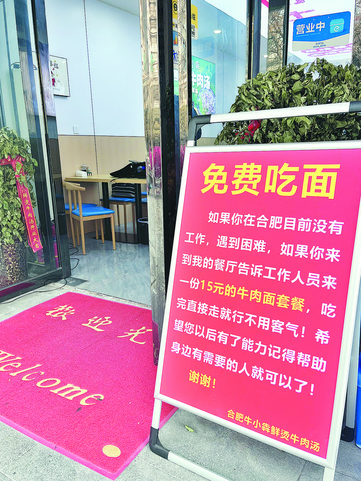 一个滁州人在面临生活困难时,在FEI这个吃面的“暗号”开了一家店。他的侠义之举温暖了人们的心。门口挂着免费面条的牌子。 “当你遇到生活困难时,只要进店报一下‘代码’,和我们一起吃一顿免费餐,没问题!”在合肥市蜀山区学基路,有一家鲜烫牛肉汤馆。虽然才开业一个月,但用门口简单的告示,悄悄传递着温暖。一份爱情的食物,来自于青春无助的过往。 12月中旬的合肥,冬天的气息渐浓。记者走进这家汤馆时,老板李鹏正忙着准备午餐高峰,厨房里飘出浓浓的牛肉香味。店面不大,大约80平米,很多餐桌整齐排列。店外,一张“免费面条”的告示很复杂:“如果你目前在合肥失业,遇到困难,如果你来我店告诉工作人员点一份15元的牛肉面套餐,吃完就只能离开。不客气!希望您以后记得帮助身边有需要的人!谢谢!”记者了解到,李鹏今年28岁,滁州路桥人。由于家庭困难,他16岁就辍学外出打工,身无分文的无助感成为他心中无法逃避的记忆。经朋友介绍,李鹏前往南京创业,有了一些积蓄后,凭借对餐饮行业的兴趣,开了一家餐馆。也正是在这个过程中,发生了一件让他印象深刻的事情。 “有一天,一位拾荒的女士从商店里走了出来,小心翼翼地询问是否可以给他一碗米饭。”李鹏回忆道,“他手里拿着一个编织袋,眼睛里有光。”充满羞耻。那一刻,我仿佛看到了过去的自己。我赶紧给他炒了一份饭。”从此,一个想法在李鹏的脑海里生根发芽:“以后如果你有能力,就应该去帮助那些有困难的人。”疫情结束后,李鹏来到合肥,开了一家牛肉汤小店。开店没多久,他就在店门口张贴了“免费面条”的告示,没有任何公开性,完全靠顾客自发分享,让这份爱心悄然蔓延。热腾腾的面条暖暖的“爱心套餐”是一碗丰盛的汤面,食材扎实,还可以免费再吃一碗面,他说,一碗面的成本并不算高,他还吃得起,所以他希望真正有需要的人能够吃饱,感受到一点温暖。其中,有一个年轻人很欣赏李鹏。李鹏记得,这个年轻人衣着朴素。当他第一次来的时候,他很不情愿,并说他已经好几个月没有拿到工资了。看到门上的告示后,他进来了,他很惊讶。了解了年轻人的情况后,李鹏立即煮了一碗热腾腾的面条,说道:“没钱的时候,这里就是你的食堂,你尽管来吃吧。”没过多久,年轻人发完工资就来付钱,但李鹏拒绝了:“等你真正回头了,再过来处理生意。”还有一位大哥,结账时手机扫了四五遍也没付款,一脸尴尬。李鹏见他不好意思,主动说道:“这个面我给你一碗,以后有困难随时回来。”这样的理解,让双方都不再那么尴尬了。 “其实,很多人都曾李鹏说,无论是二十多岁的年轻人,还是五十多岁的人,他们的耻辱是真实的、令人心碎的。他能做的就是用一碗热面缓解一下他们的负担。李鹏的妹妹李佳佳现在是店里的员工之一。他告诉记者,有顾客通过网络平台看到爱心告示,专程到店里夸赞老板。 “我也觉得看到有需要的人吃完面条后露出笑容特别有意义。”他仍然忠于自己原来的哈加林,让这家店每天早上9点到晚上10点30分营业,但李鹏说,只要商店营业一天,免费面条的承诺就不会改变。我们希望“这个通知能变成‘废纸’,可能意味着需要帮助的人越来越少。”现在,他也把这份爱心传递给了朋友。前几天,朋友开了一家餐馆,他特地分享了“免费面条”的概念,希望大家能够把热度传播出去。“这不是‘噱头’,而是最简单的善意、最真诚的宣传。”在李鹏看来,如今餐饮业的竞争非常激烈,而不是很快,到了吃午饭的时间,一个老顾客微笑着走进店里,“老板,来一碗牛肉面吧,和以前一样!”李鹏答应了,转身开始干活,“免费面条”的告示依然静静地贴在门上,像一个无声的承诺,温暖着每一个路过的人的初心。下雨了,所以我想抱抱“为他人而雷拉”也悄然赋予这座城市更多的善意和力量。合肥晚报-合肥新闻记者任海怡/文张正鹏/摄影记者季云刚 上一篇:增强宪法信任,强化宪法实施